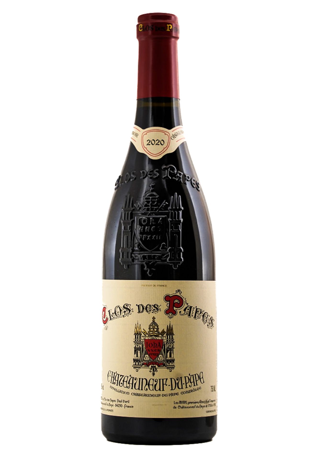 Made with the usual blend of 55% Grenache, 30% Mourvèdre, 10% Syrah, Cinsaut and other permitted varieties, the 2020 Châteauneuf-du-Pape checks in at 15.5% alcohol. It bursts with pungent aromas of red cherry, raspberry, strawberry, blueberry, black plum, thyme, black pepper and is distinctively spicy. Full-bodied and expressive, wrapped in an intricate web of velvety tannins and balanced by lively acids, it is a majestic Clos des Papes. 96 points. Nicolas Greinacher, Vinous.