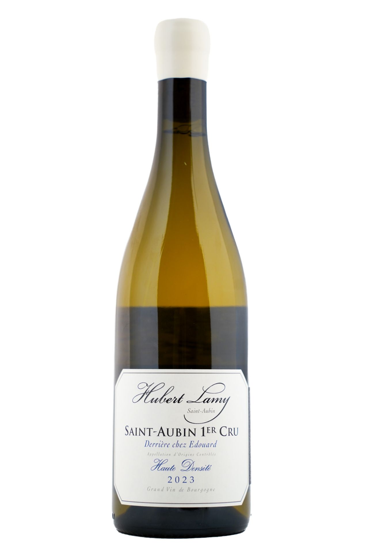 From the top of the slope, planted at densities of 20,000 and 30,000 vines per hectare in almost equal proportions and aged in 350- and mostly 600-liter demi-muids, Lamy’s 2023 Saint-Aubin 1er Cru Derrière Chez Edouard Haute Densité expresses itself from the glass with a bouquet of white flowers, lemon peel, oyster juice, pear, peach and toast mingled with nuances of smoky reduction. On the palate, it is medium- to full-bodied, deep and layered, with a crystalline core of fruit, formidable concentration and tension, ample structuring chalky extract, mouthwatering acidity and a long, saline finish. This is a superb wine that will richly reward patience.97 points. The Wine Advocate.